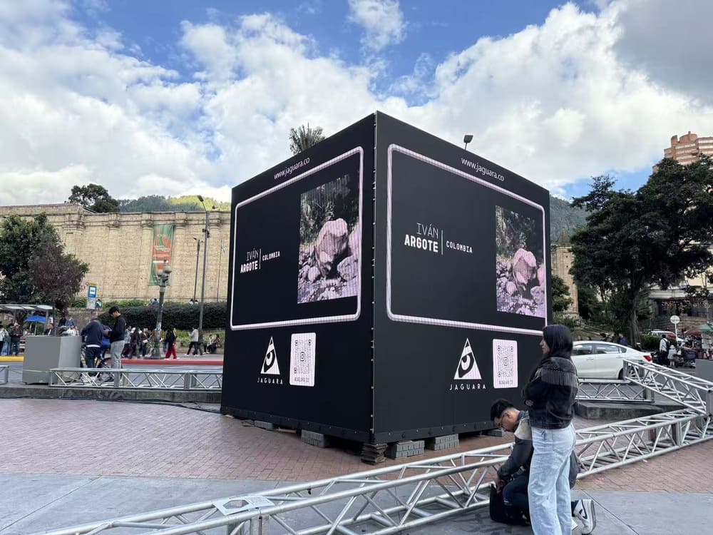 The Jaguara exhibition, designed as a “cosmic messenger,” was featured at Bogotá’s prestigious #BOG25 Bienal Internacional de Arte y Ciudad in September. The touring installation aimed to combine contemporary art with environmental advocacy, engaging audiences through immersive visual experiences.